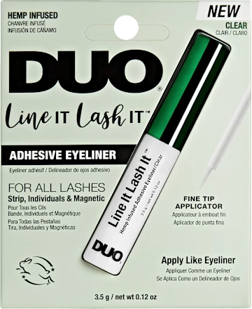 Der Wimpernkleber Line it Lash it Hemp Infused von ARDELL ist ein wahres Multitalent. Er bildet die perfekte Basis für alle Arten von künstlichen Wimpern, geeignet für Bandwimpern, Einzelwimpern und magnetische Wimpern. Er lässt sich wie ein Eyeliner direkt auf dem Augenlid auftragen und hält die Wimpern den ganzen Tag. Nach dem Trocknen wird der Duo transparent. Kleine Fehler oder ein nicht ganz ordentlich gezogener Lidstrich sind daher nicht sichtbar, eine perfekte Lösung für Anfänger.