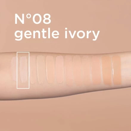 Die federleichte flüssige Textur der ARTDECO Make up Perfect Teint Foundation gentle ivory 08 ist nicht nur ölfrei, sondern hat aufgrund der enthaltenen, feinsten Puderpartikel auch eine ölabsorbierende Eigenschaft. Die Textur verschmilzt dabei mit der Haut und lässt den Teint ebenmäßig und natürlich aussehen. Die Foundation zeichnet sich zudem durch ihre langanhaltende Wirkung aus, die mittlere bis hohe Deckkraft ist dennoch kaum spürbar auf der Haut. Kleine Unebenheiten und Hautunregelmäßigkeiten können optisch kaschiert werden.