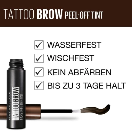 Innovativ und besonders: Mit Hilfe des dünnen Pinsel-Applikators wird die tönende Formel der Maybelline New York Tattoo Brow Gel Tint medium 02 gezielt auf die Brauen aufgetragen. Je nach Einwirkzeit werden die Augenbrauen dadurch längerfristig gefärbt und erhalten einen Look, der hält. Die Formel wird ganz einfach abgepeelt und hinterlässt keine Rückstände in den Brauen.