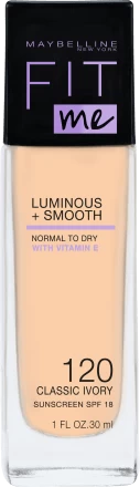 Maybelline New York Foundation Fit Me Liquid, LSF 18, 120 Classic Ivory, 30 Ml